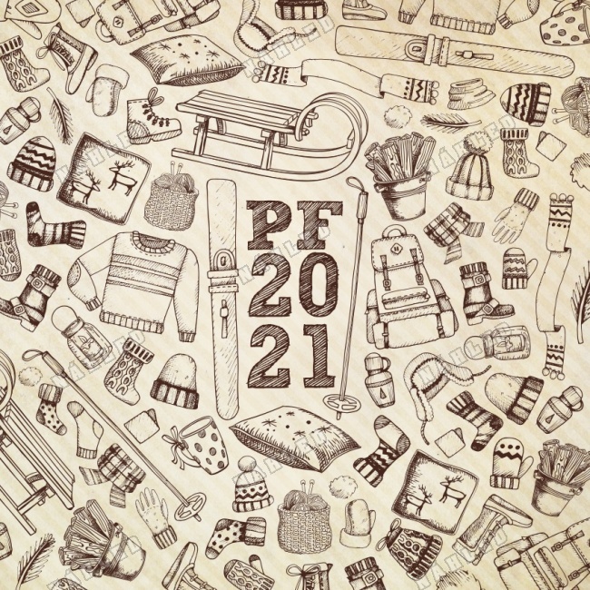 Novoročenka se zimními doplňky - oblečení, sáně, lyže